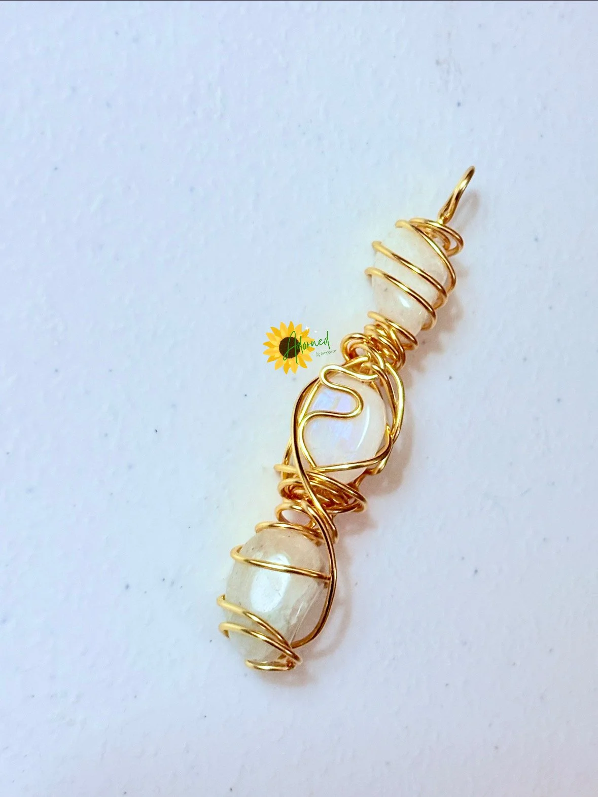 This triple stone pendant features Moonstone, hand-wrapped in warm copper using my signature sculptural flow. Three stones are stacked in alignment, representing intuition, emotional balance, and trust in natural timing.