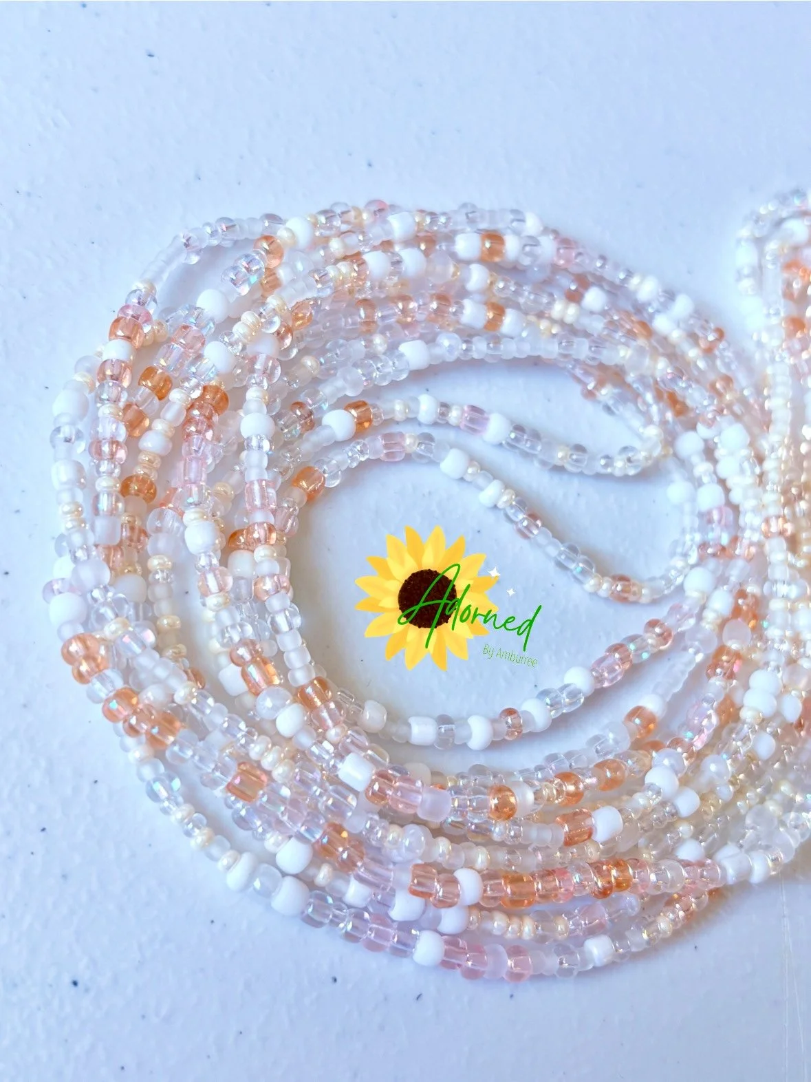 Soft Spoken is a delicate, layered waist bead designed for ease, grace, and subtle seduction. Blush peach, milky white, and clear beads blend into a barely-there shimmer that catches light with every movement. This strand doesn’t shout—it hums. Perfect for everyday wear, sleep, self-care days, or moments when softness is the statement.
