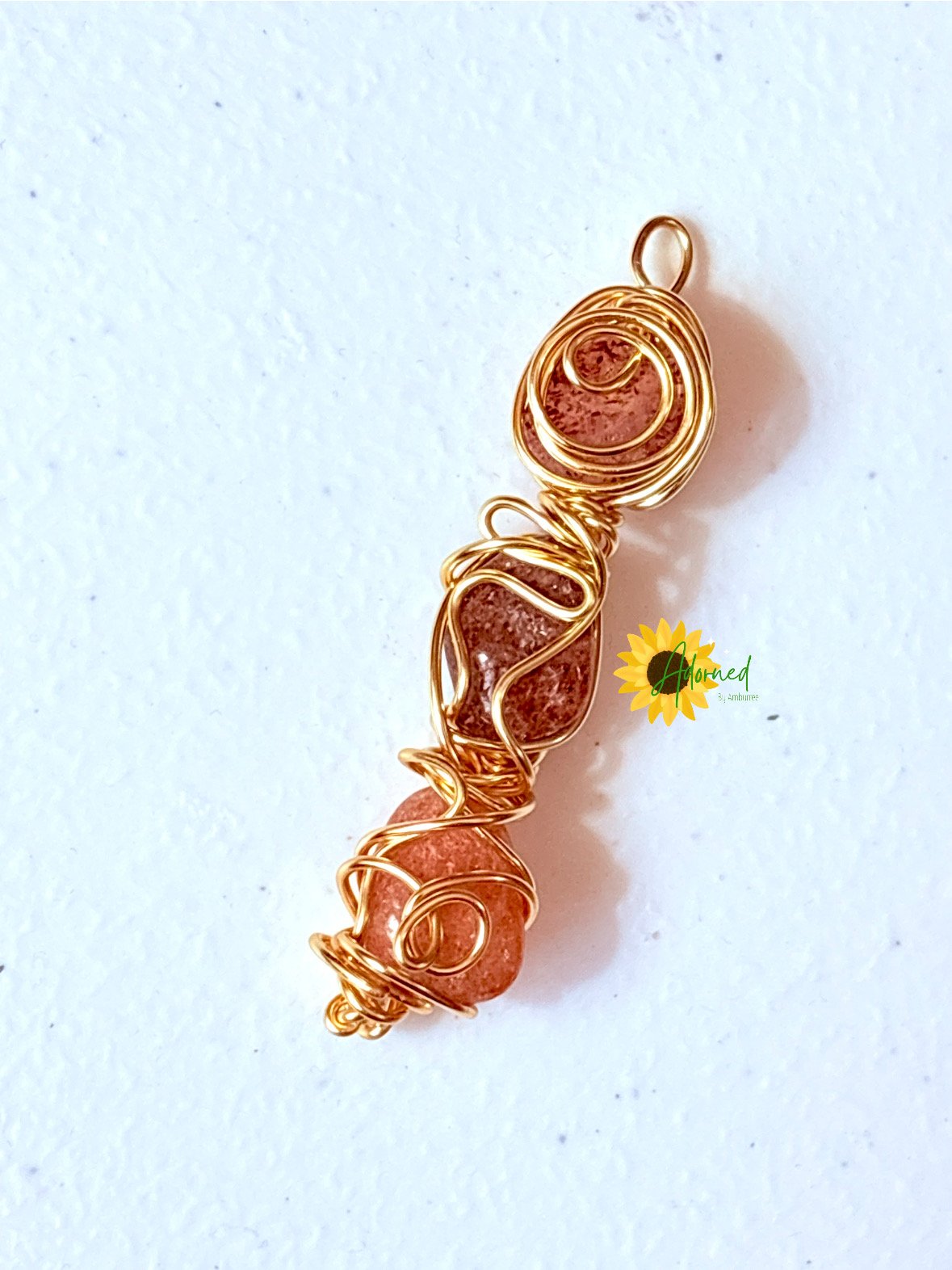 This triple stone pendant features Strawberry Quartz, hand-wrapped in warm copper using my signature sculptural flow. Three stones are stacked to represent joy, emotional openness, and natural attraction.