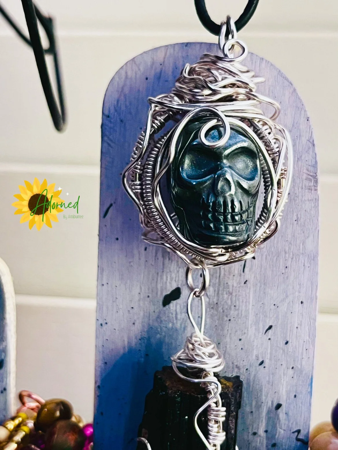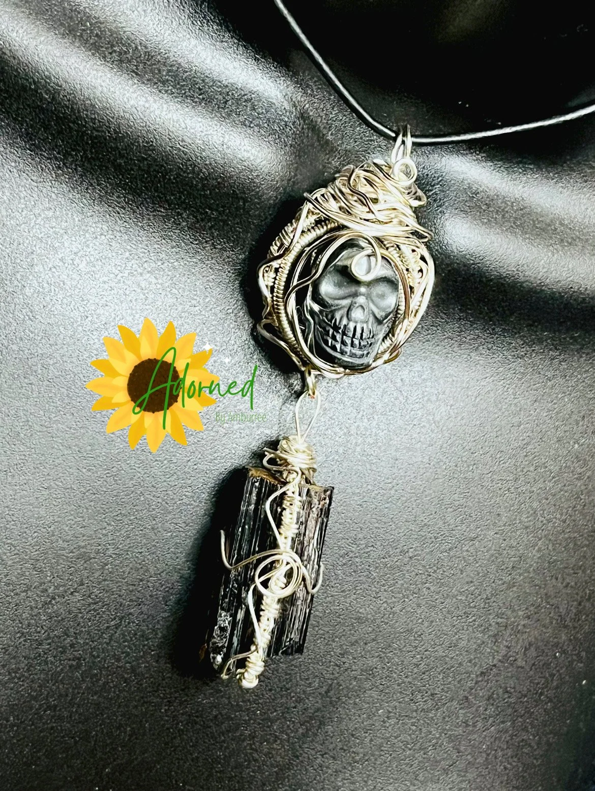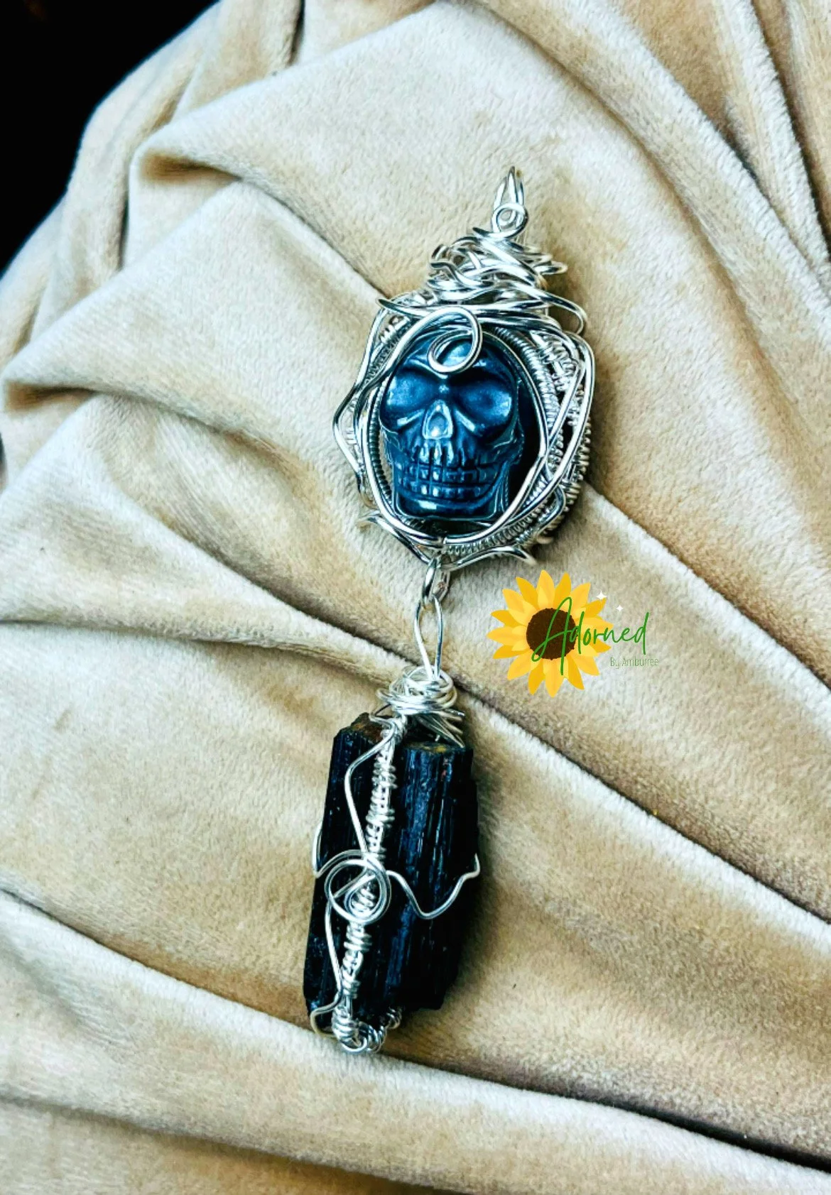 The Return of Her is a protector piece for the soul that’s died and bloomed again. The hematite skull stands as a mirror to shadow and self — absorbing what no longer serves while anchoring you in power. Hematite carries the weight of grounding and rebirth, reminding you that transformation is both art and armor.