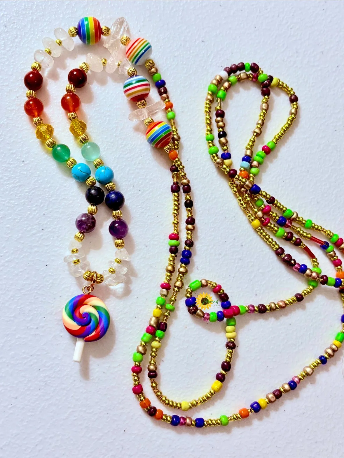 Sweet Chakras is a full-spectrum energy strand designed to bring color, healing, and playfulness back into your aura.