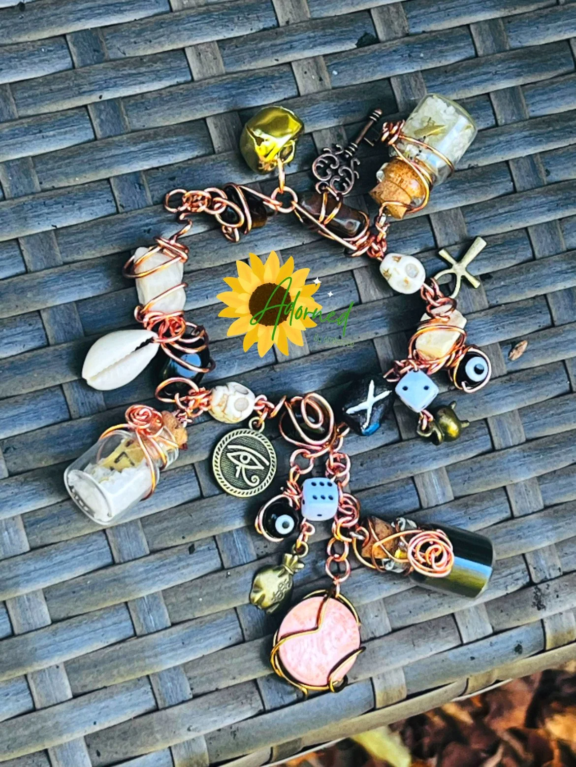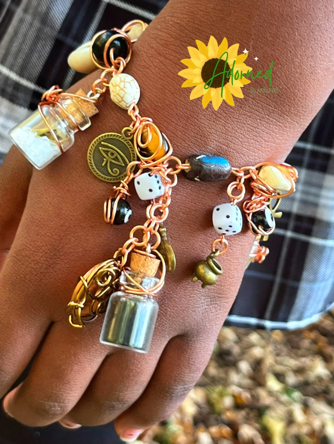 🪬 Crafted in honor of Hoodoo Heritage Month, this bracelet is a portable altar of prosperity, protection, and reversal. Every vial, stone, and charm carries intention—sweetening your path, guarding your spirit, and pulling fortune closer.