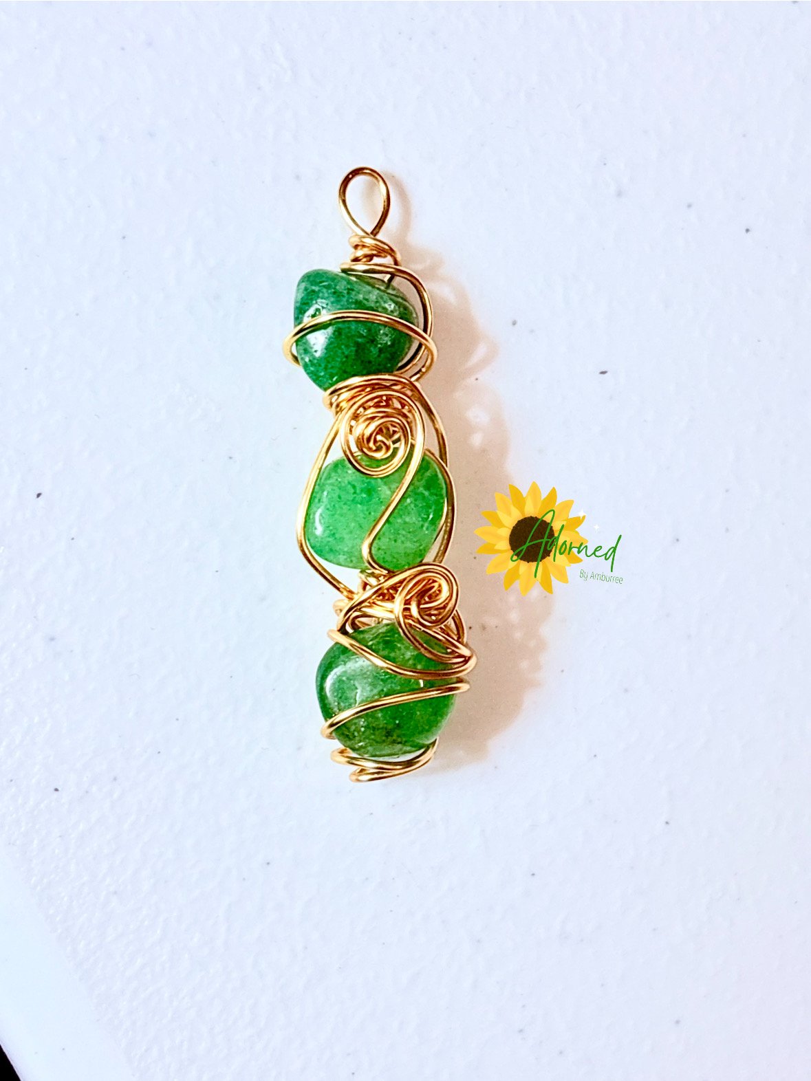 This triple stone pendant features Green Aventurine, hand-wrapped in warm copper using my signature sculptural flow. Three stones are stacked in alignment, representing growth, opportunity, and renewed optimism.